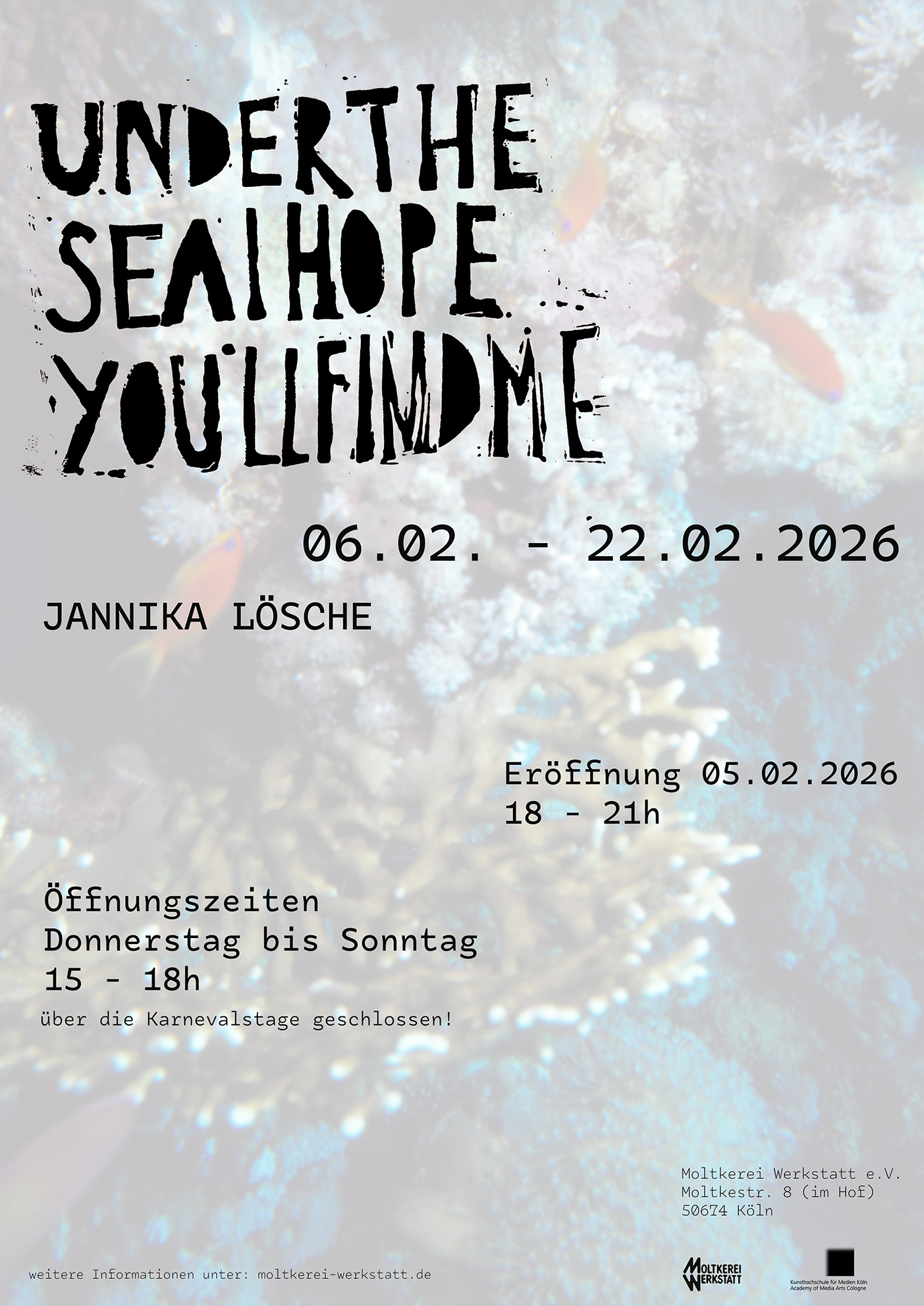 8 Kisten voller Dias und hunderte weitere Unterwasseraufnahmen bilden die Grundlage dieser Ausstellung. Jannika Lösche (*1998 in Viersen) verwebt die Bilder aus dem Nachlass ihres Großvaters, einem Hobbytaucher, der in zwei Reisen auf die Malediven und ans Rote Meer die Mehrheit der Bilder aufgenommen hat, mit ihrer eigenen künstlerischen Praxis. Die Arbeit, welche als ihr Diplomprojekt an der Kunsthochschule für Medien Köln entstanden ist, bringt eine Soundarbeit mit den Fotografien in einer Installation zusammen. Die Bilder verflechten sich mit der Soundkomposition, die den Ausstellungsraum einnimmt. Dabei zeigen sie Korallen, Fische und Unterwasserlandschaften in verschiedensten Formen und Farben. Sie bilden ein persönliches Archiv, das aber auch darüber hinaus eine Relevanz zeigt. So umfasst die Sammlung eine Dokumentation teils schon oder bald verlorener Landschaften und Tierwelten. In einer von Bilderfluten geprägten und automatisierten Welt schlagen Dias als ausgehendes Material einen Gegenpol vor, ihre Beschaffenheit als physischer Datenträger verstärkt die Bedeutung der einzelnen Bilder als Dokumentationsobjekt.